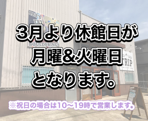 3月より休館日が月曜日&火曜日となりますのでご注意下さい。