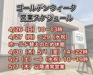 5/2(土)10時~19時 土日祝営業